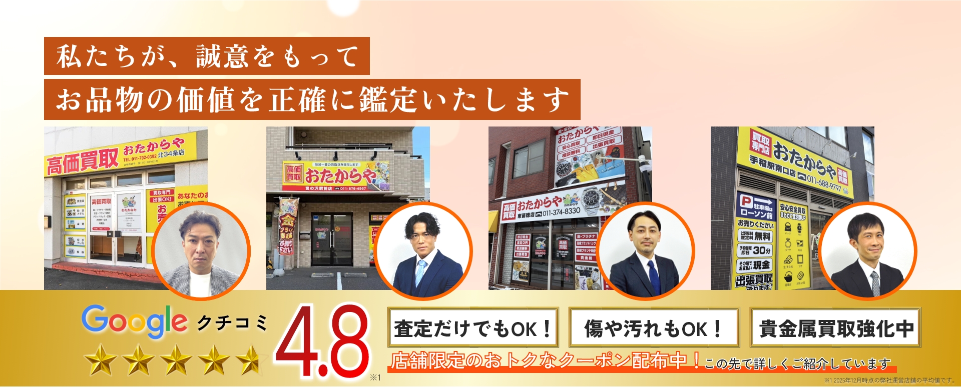 おたからや北34条店おたからや宮の沢駅前店おたからや東苗穂店おたからや手稲駅南口店